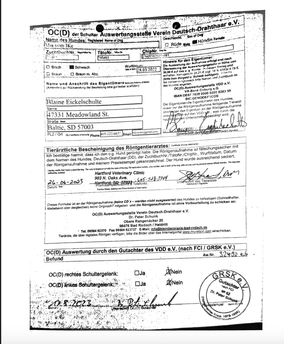 Mia produced our R vom Ike litter, which will be testing in 2026, and she has just whelped our U litter. She has proven herself to be a strong addition to our breeding program and an attentive, nurturing mother. We look forward to watching her offspring develop and continue the qualities she so consistently demonstrates.