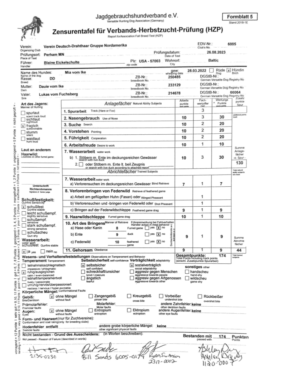 Mia is the result of our repeat breeding between Zoe and Lukas vom Fuchsberg, a pairing we valued enough to do again. Now approaching three years of age, Mia remains playful, eager, and deeply motivated to please. She is a highly versatile hunting companion, always enthusiastic and ready for the next opportunity in the field.