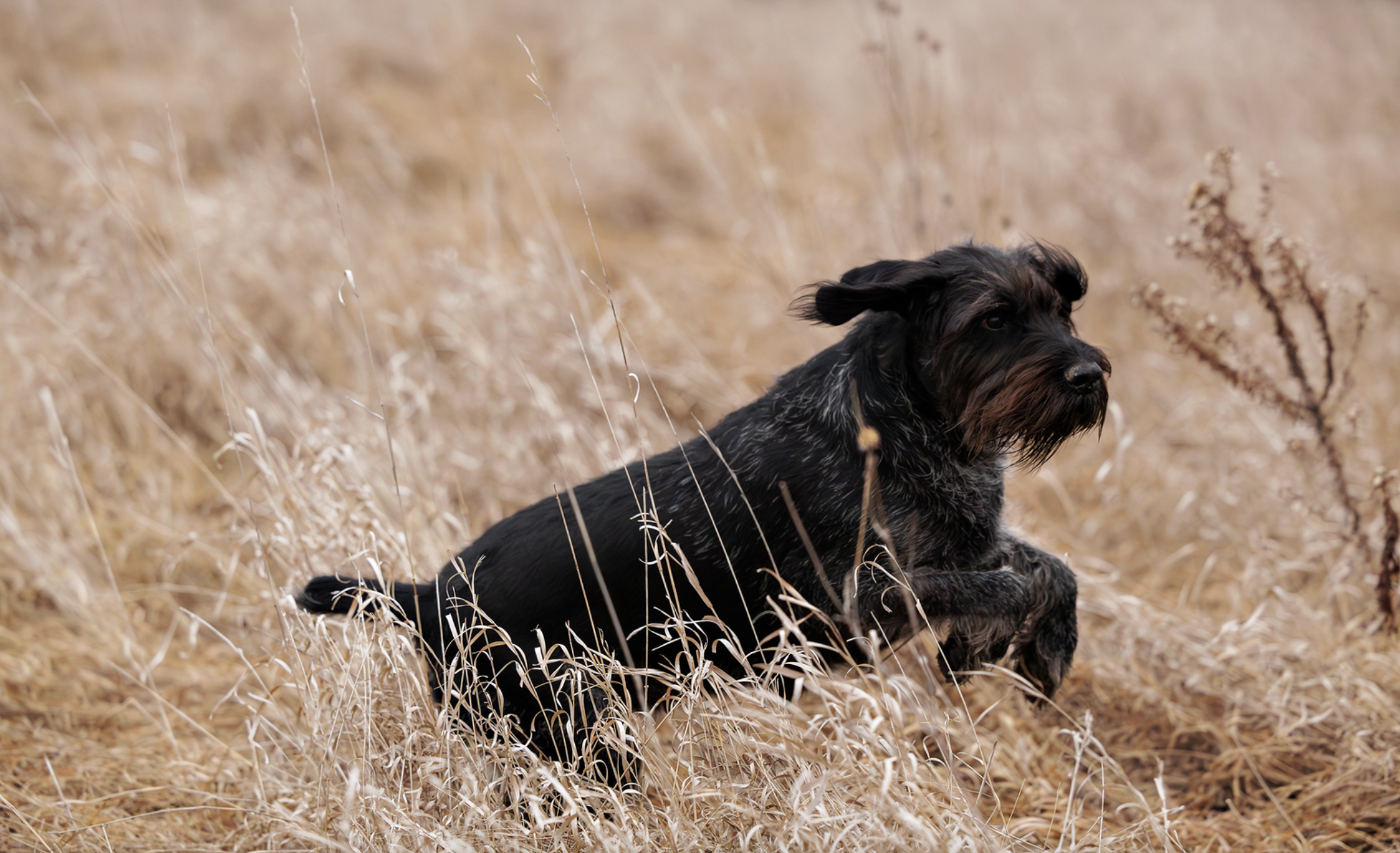 Gigi is a beautiful, highly talented, and easy dog to hunt. She is a daughter of Zoe (Dauie vom Ike x Kris vom Slaney-Vale), an excellent hunting dog known for her strong conformation and quality coat. This breeding was a strong genetic match with Zoe and produced a very consistent litter of well-connected hunting dogs. Gigi has gone on to be an outstanding producer, consistently producing pups that are equal to or better than herself.
